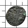 GLOR-IA E[XERC-ITVS] // CONSA•. Zwei einander zugewandte Soldaten in Helm und Rüstung, jeweils in der äußeren Hand einen Speer und in der inneren Hand einen Schild haltend, zwischen ihnen zwei Scheibenstandarten mit Vexilla.